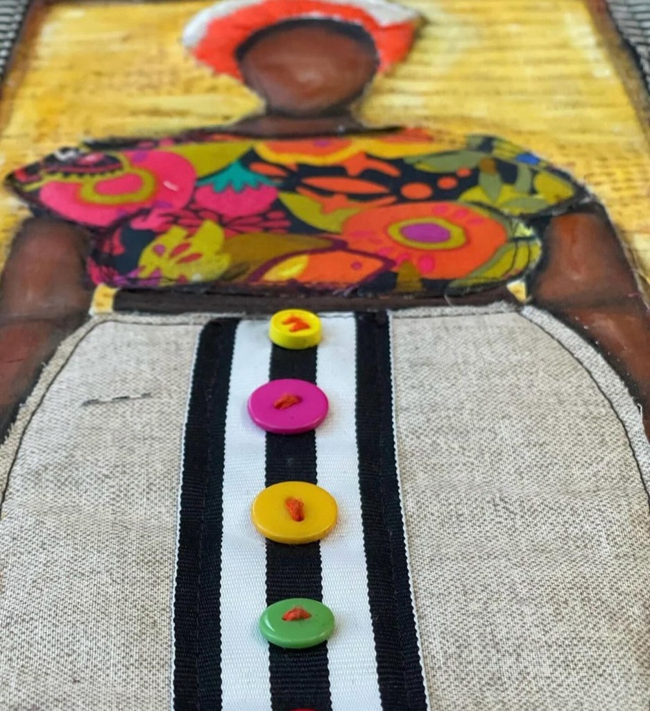 Tina’s home studio is filled with an array of materials like, fabric, decorative paper, paints, and each waiting to be transformed into something extraordinary. On a given day you may catch her experimenting with cyanotypes on fabric and creating intricate textured wall hangings or collages. Tina’s mixed media works are not only a feast for the eyes but also provoke thought and conversation. She believes that art should be accessible and relatable, and she often incorporates elements that resonate with her audience’s cultural backgrounds