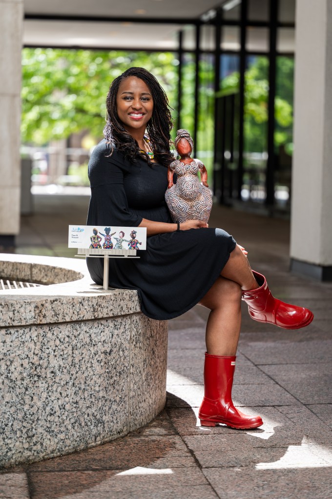 Tina is best known for her “Women of Color” paper mâché sculptures that are influenced by the interconnectedness and the importance of community. Her work features women of different skin tones, and shapes; a celebration of their diverse beauty and traits. It represents the support system women create through friendships as women of color. Her sculptures and mixed media pieces are a demonstration of a beauty that was once overlooked, and the solidarity and strength that women of color have embraced by supporting one another. Her work acts as a statement of how beauty is no longer dependent on western ideals that created a hierarchy of beauty based on skin tones and body types. Many of her sculptures exude a joy and confidence that cannot be missed. The sense of community among her sculptures is more visible and powerful as a collective, and a reminder of the strength woman have when they come together.